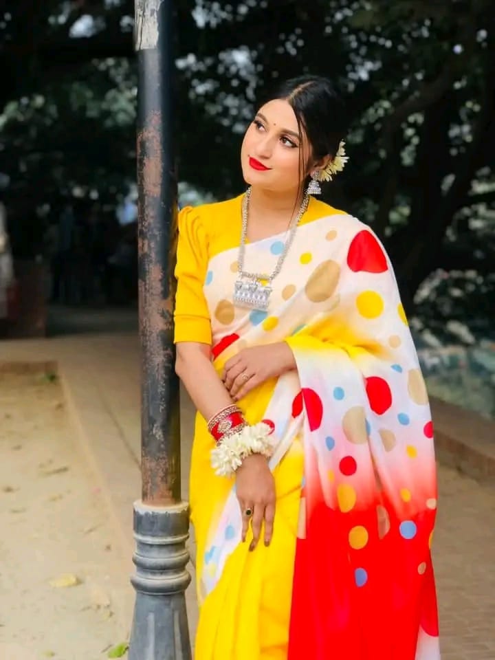 মনোমুগ্ধকর ডিজাইন ও উজ্জ্বল রঙে তৈরি ১২ হাতের চমৎকার চান্দুরি সিল্ক শাড়ি